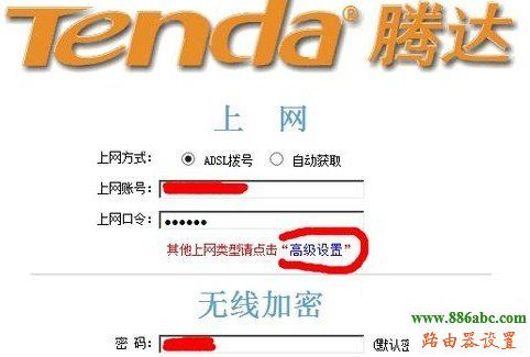 第三步、在輸入密碼登陸后,出現了騰達無線路由器的設置窗口,在這里邊我們可以看到你在上網賬號密碼還有最下面,就有無線加密。這里也就是修改無線WIFI密碼的地址。可以在這個地方直接輸入你的新密碼,并且點擊確定按鍵。