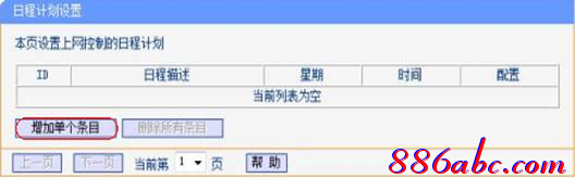 依次選擇“上網(wǎng)控制”—“日程計劃”菜單,點擊“增加單個條目”。