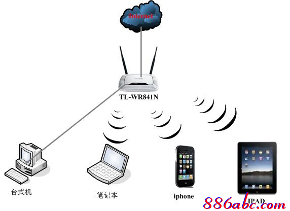 說明:無線路由器相當于一臺有線路由器加一個無線發射的小型“基站”,可以同時滿足有線電腦、無線的筆記本、平板電腦等終端同時接入共享寬帶上網。