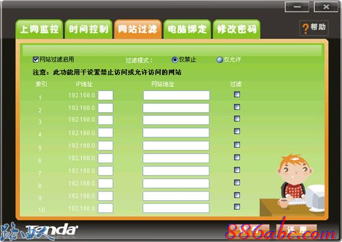 三、Tenda W168R無線路由器網(wǎng)站過濾功能