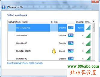 | e.待搜索到周圍無(wú)線信號(hào),選擇該路由器的SSID(該路由默認(rèn)SSID相見路由器標(biāo)貼),點(diǎn)擊“下一步” |