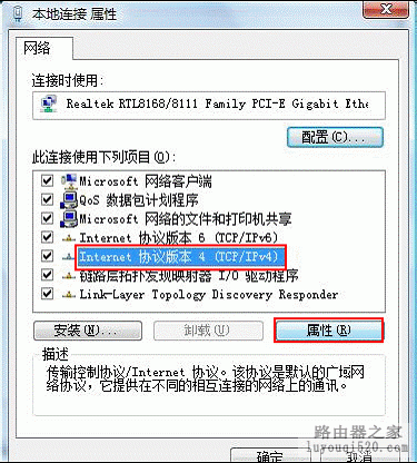 請選擇 “配置”頁面的“TCP/IP”的屬性。可能您會看到不止一個“TCP/IP”,請選擇連接寬帶路由器的網卡的“TCP/IP”。屬性界面如下: