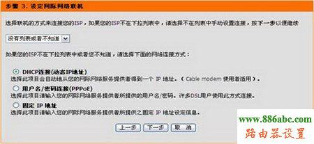 A.若您電腦直接接上ADSL或Cable Modem時,不需要做任何連接相關(guān)設(shè)置即可連至網(wǎng)絡(luò)的話,請選擇DHCP連接;