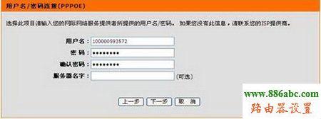 在上一界面中選擇“用戶名/密碼 連接(PPPoE)” ―― PPPoE方式連接