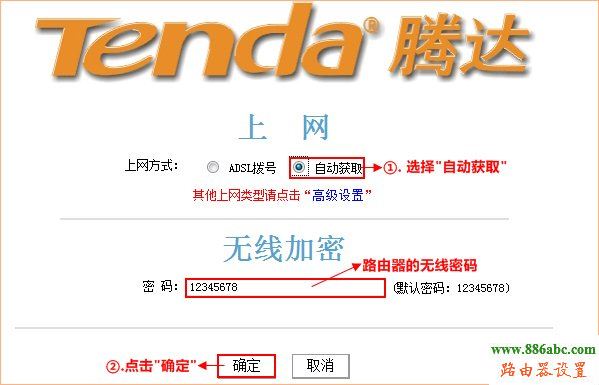 在頁面中選擇“ADSL撥號”,輸入寬帶的帳號和密碼,“確定”即可,參考如下設(shè)置步驟: