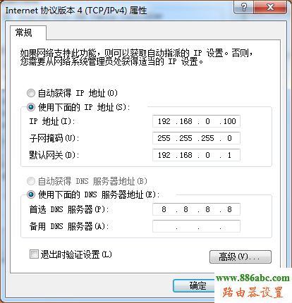(2)手動設(shè)置本地連接IP地址為:192.168.0.X( 1<X<254 )
