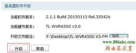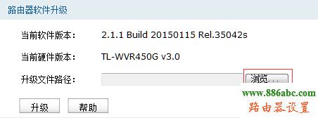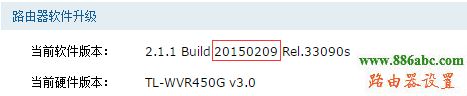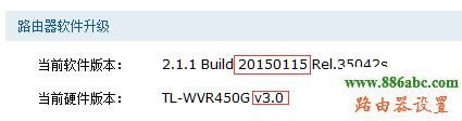 其中,TL-WVR450G代表產品型號,V3.0代表硬件版本,20150115代表當前軟件版本。